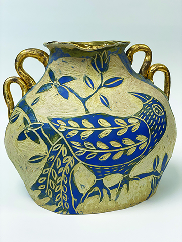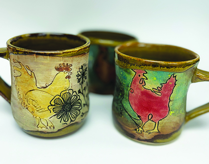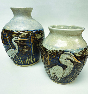Chris and I moved here over 20 years ago from Folsom California to buy the Art &Materials store that used to be on Middle Street. Later, we changed the name to Bear Hands Art Factory. That’s where I started in pottery, with Jim Bisbee as my teacher. Chris also learned to work in clay, and we frequently collaborate on projects.