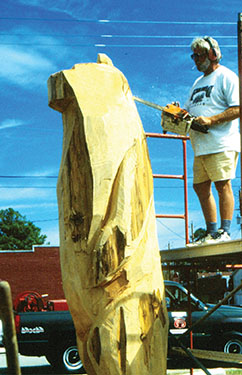 In the spring of 1993, the owner of a small power equipment company in Pamlico County stopped by my office to suggest Swiss Bear consider purchasing three large bear sculptures for $10,000. They were on his property, were carved with a chainsaw, and since he was closing his business, thought the bear sculptures would be a welcome addition in Bear Plaza. Having never seen any “chainsaw art,” I assumed they would be very crude and not suitable for our downtown, so I wasn’t interested in pursuing it further.