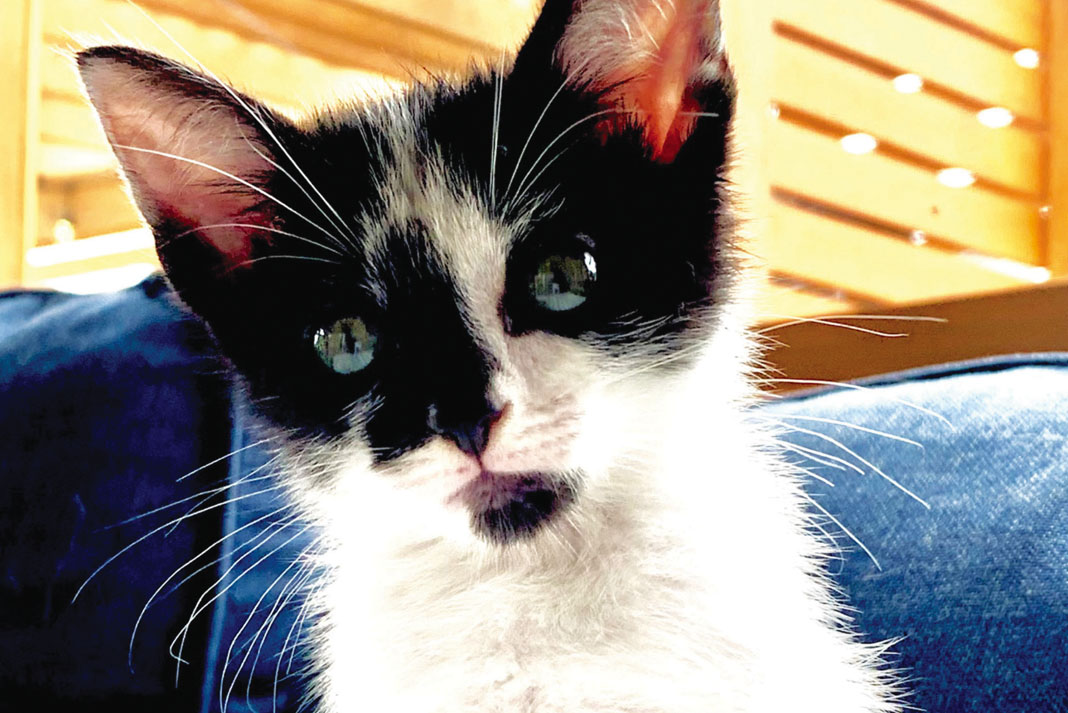Camper Jones is an adorable little black and white Domestic Shorthair kitten. His owner, Grace, found him (for free!) in a listing on Facebook Marketplace, and now he is her little “soul mate.”
