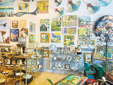 Recently purchased by Suzanne Richey, the gallery has been refreshed with an inviting and spacious layout that boasts a continually revolving selection of paintings, handmade jewelry, handblown glass, metal and wood arts, stationary and handmade cards by local artists.