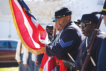 It was a hot July day. Hundreds of men in orderly ranks stood with rifle stocks cradled in sweating palms. Each wore a dark blue wool coat and lighter blue wool trousers. Buttons and belt buckles gleamed in the sunlight, illustrating the prophetic declaration of the Black orator and anti-slavery activist Frederick Douglass: “Let the black man get upon his person the brass letters US, let him get an eagle on his button, and a musket on his shoulder, and bullets in his pocket, and there is no power on earth … which can deny that he has earned the right of citizenship in the United States.”