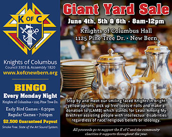 Featured Event Knights of Columbus Yard Sale By New Bern Magazine - April 29, 2026 0 3 FacebookEmailPrint