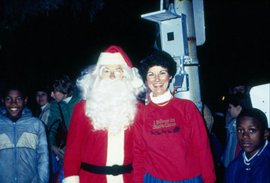 In the freezing cold, after a quick blessing and a few Ho, Ho, Ho’s, everyone watched in great anticipation for the moment all the lights would come on. A media cameramen stood poised as Santa flicked the switch. Nothing happened. He flicked it again, and again nothing happened. He looked at Linda, ‘‘what went wrong?’ “I don’t know, try again.” He flicked it again, still no lights. Finally, they realized the lights weren’t going to come on, as the timer had been set for 6:30 p.m. according to the scheduled program. By cutting it short, they were 15 to20 minutes ahead of schedule. Linda said, “While someone tried to get into City Hall to move the timer ahead, we stood there humiliated, watching everyone leave in total disappointment. When the lights finally did come on, no more than five people were there to see it. It was awful. It’s funny now, but it certainly wasn’t then.”
