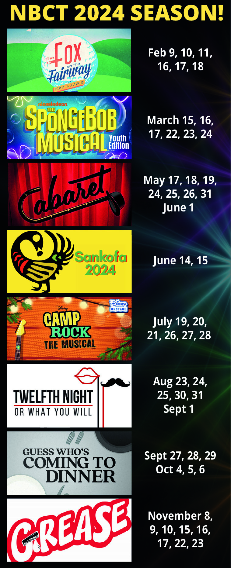 The Encore Series at NBCT is a full calendar of special events that happen parallel to the regular theatre season of plays and musicals produced each year. According to Executive Director, Michael Tahaney, “The Encore Series officially began in 2022 to offer audiences a variety of professional and semi-professional entertainment in our beautifully renovated theatre spaces. Recently, the historic Athens Theatre and lobby have been fully refurbished, as has the adjoining Studio Theatre (formerly known to many as the Athens Café). The audience experience has been our focus for the past two years to better match the longstanding tradition of high production quality at NBCT.”