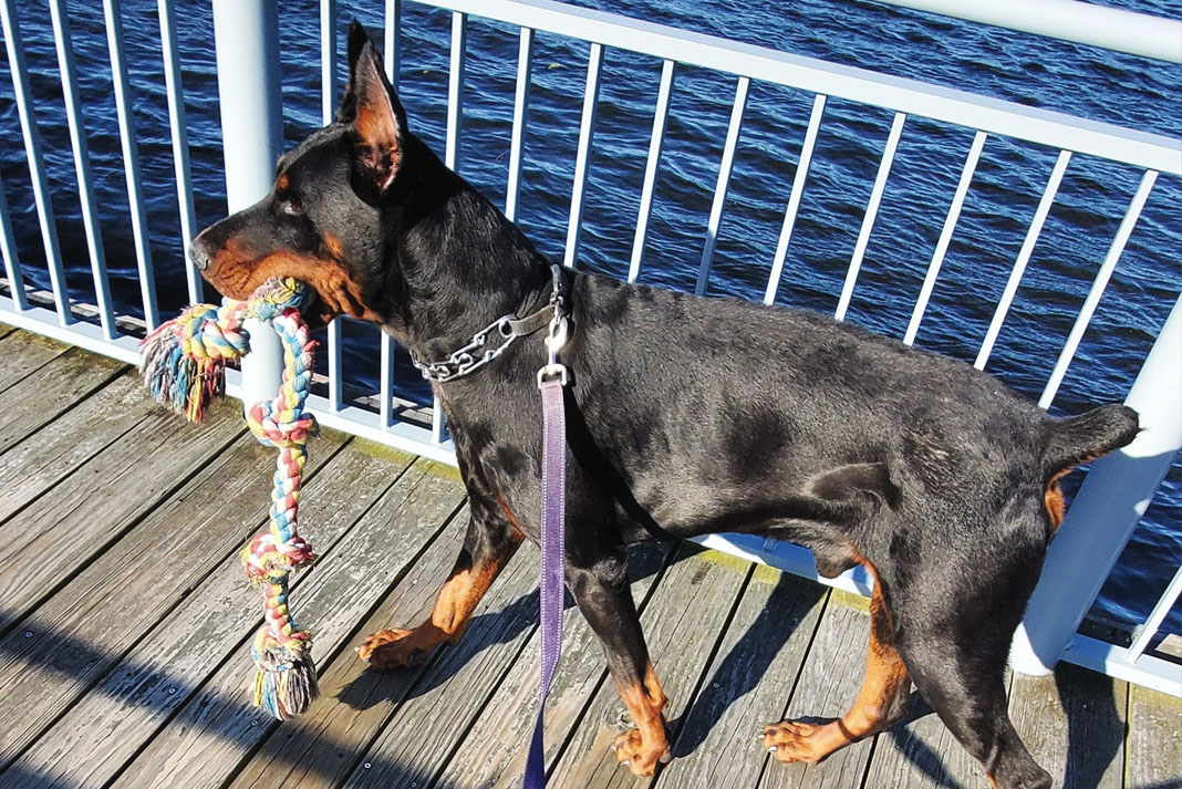 Octavius is two year old European Doberman who was born in Alabama, and adopted by Sam and Susie while they were living in Washington DC. Octavius made his New Bern “debut” on June 18, 2021, and since then he has become one of the most popular and recognizable pups in downtown!