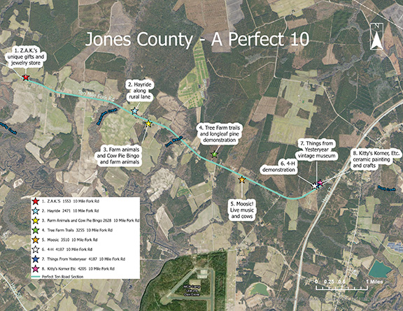 This fundraiser will offer activities at eight sites along a five mile stretch of 10 Mile Fork Road, conveniently located near Pollocksville, Trenton and River Bend. These sites include: