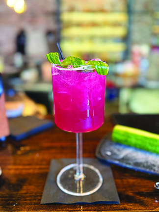 “The James is a Speakeasy Drinkery with an upscale feel, in a casual environment with expert mixologists ready for you anytime,” says Brittney. “I love the design of the bar. It’s like a stage for the bartender with plenty of room to work on creating new things while incorporating local spirits and locally sourced ingredients from small family-owned businesses. For example, we buy ingredients from Living Well, Mad Hatter teas, and Mon Asian Market to create craft cocktails that include unique elements like dried flowers and exotic teas.”