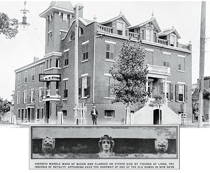 “The Greatest Architectural Curiosity in the South. It is formed by one of New Bern’s oldest brick buildings (one has done duty as a jail), transformed into such a remarkable combination and blending of dormers, balconies, pinnacles, fantastic-looking tower, railings, human, griffin and dog heads as to make it a veritable architectural puzzle. No one knows what it was intended for, and the owner, apparently believing it is nobody’s business, has failed to enlighten them.”