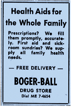 So, what about Melrose? The way Carolina Telephone solved the number shortage was by adding a three-digit prefix. In New Bern, it was MElrose 7. The first two letters translated on the dial to 63, so the new prefix was 637, but often styled as it appears in the nearby 1958 drugstore ad from the New Bern Mirror.