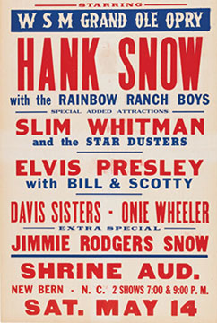 The month before Elvis Presley performed two New Bern shows in May 1955 his then-risqué Baby Let’s Play House had been released by Sun Records. Reaching the Top Five on the country charts, it would be his first hit record but it wouldn’t be enough to keep the Craven County farmers in their seats. The environs of New Bern were still rural and predominantly agricultural. The tobacco farmers and their families had come to see Grand Ole Opry stars Hank Snow and Slim Whitman.